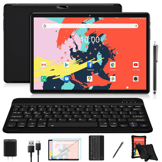 2024 Tablet 10.1" Octa-Core Android Tablet, 64GB Storage Tablet with Keyboard, Stylus Pen, Dual 13MP+5MP Camera, Wifi, Bluetooth, GPS, 512GB Expand Support, IPS Full HD Display