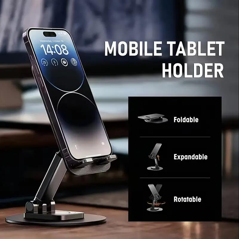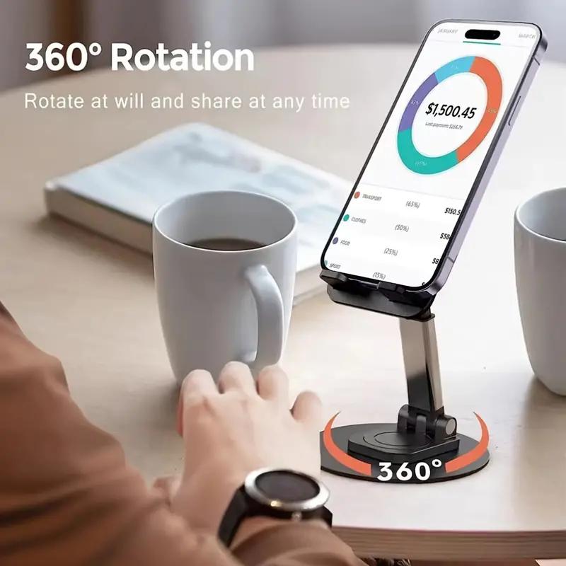 Aluminum Alloy Multi-Device Stand - Ergonomic, Foldable & Adjustable Desk Mount with Clip Holder for Phones, Tablets & Game Consoles - Non-Waterproof, 360° Rotatable Tabletop Holder