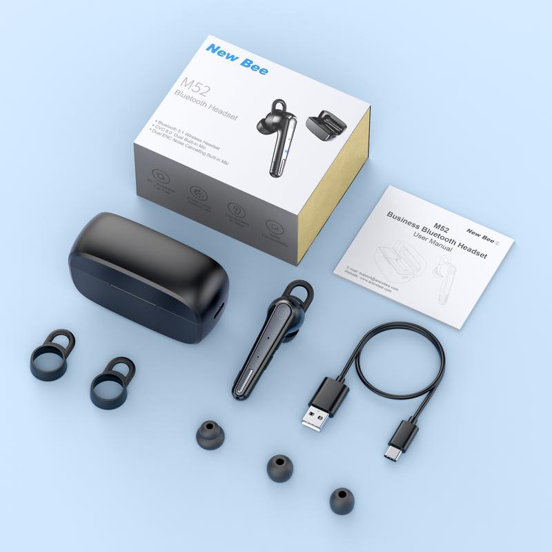 Newbee Drivers Bluetooth Earphones Handsfree Earbud with Noise Cancelling, 50 Hours Standby Business Audio Headphone Electronic Chargeable Headset